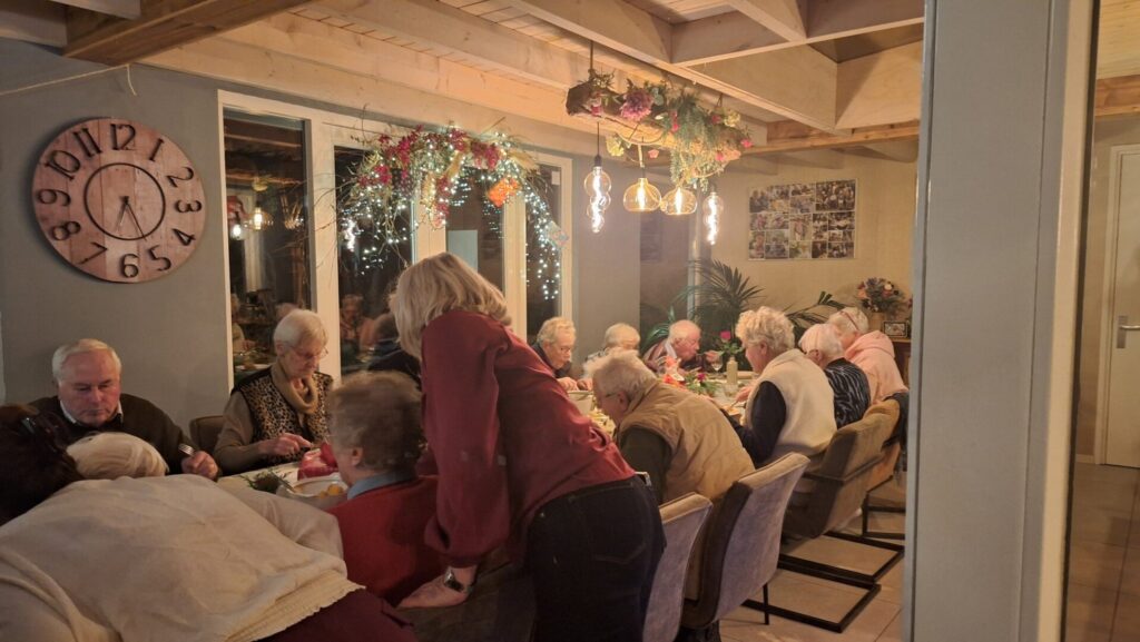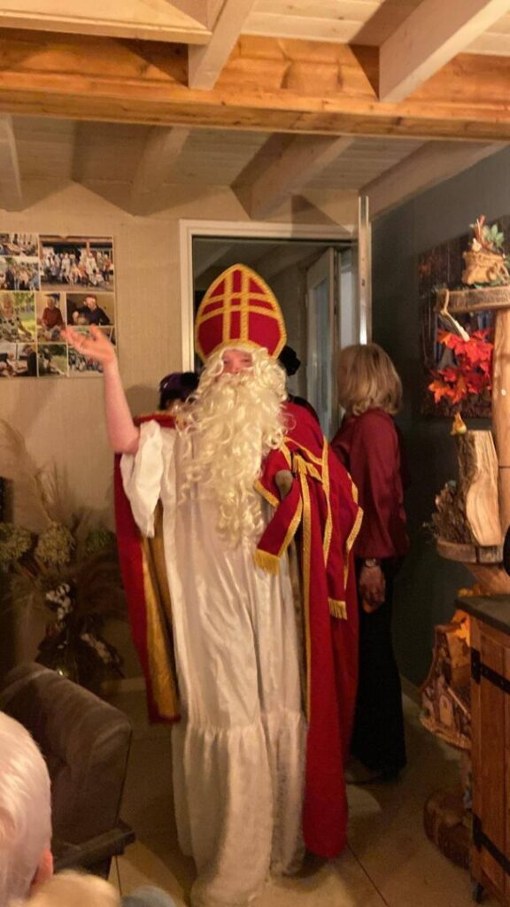 Sinterklaasfeest met de bezoekers en de mantelzorgers. De bezoekers hebben zelf hun eigen cadeau gemaakt en versierd, voor iedereen een eigen tafeltje. En natuurlijk hebben we weer heerlijk gegeten.